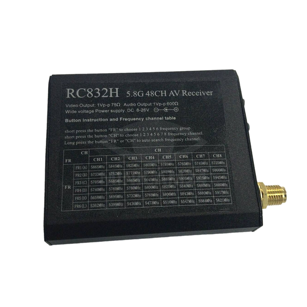 FPV Récepteur vidéo отличается устойчивостью к температурным колебаниям — он способен работать в диапазоне от -10 до 85 °C, что позволяет использовать его в самых разных климатических условиях. Входное сопротивление 50 Ом обеспечивает стабильную работу устройства, а простота подключения и надежность делают этот видеоприемник отличным выбором для любых FPV-систем.