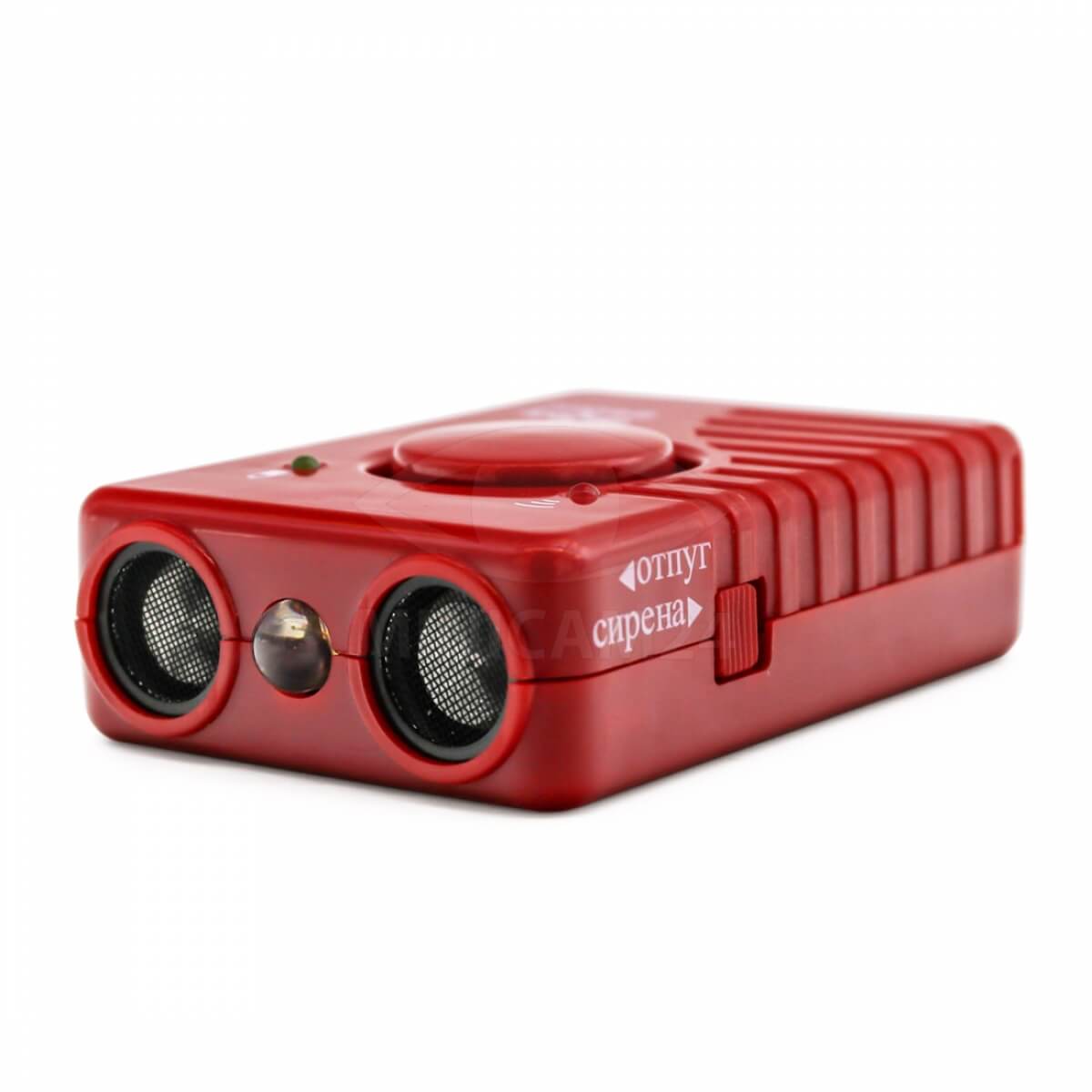 Мощный ультразвуковой отпугиватель для собак с двумя излучателями действует на расстоянии до 20 метров. Имеет широкий угол излучения и мощность до 120 дБ. Может использоваться в качестве фонарика и оборудован тревожной сиреной. Имеет встроенный аккумулятор с индикатором заряда.